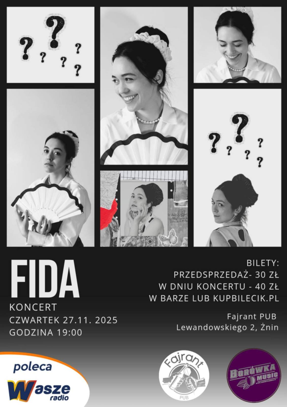 Serdecznie zapraszamy dnia 27 listopada 2025 o godz. 19:00 do Fajrant Pub w Żninie na koncert "Fidy".