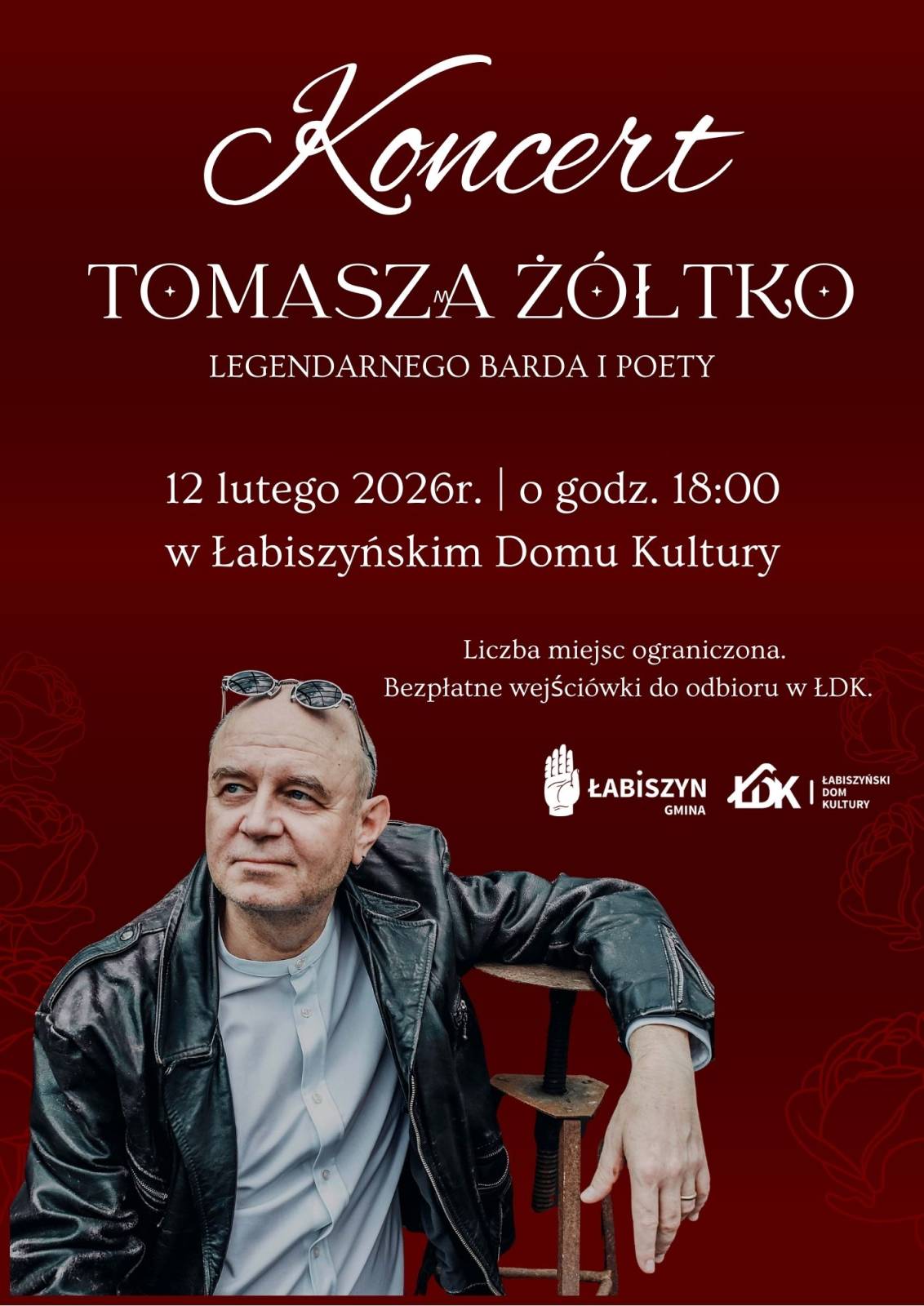 łabiszyński Dom Kultury serdecznie zaprasza dnia 12 lutego na koncert Tomasza Żółtko.